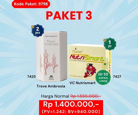 Promo Harga Murah "Trove Ambrosia (2 pcs) dan Vitacare Nutrismart Isi 30 Kapsul Lunak (1 pc)